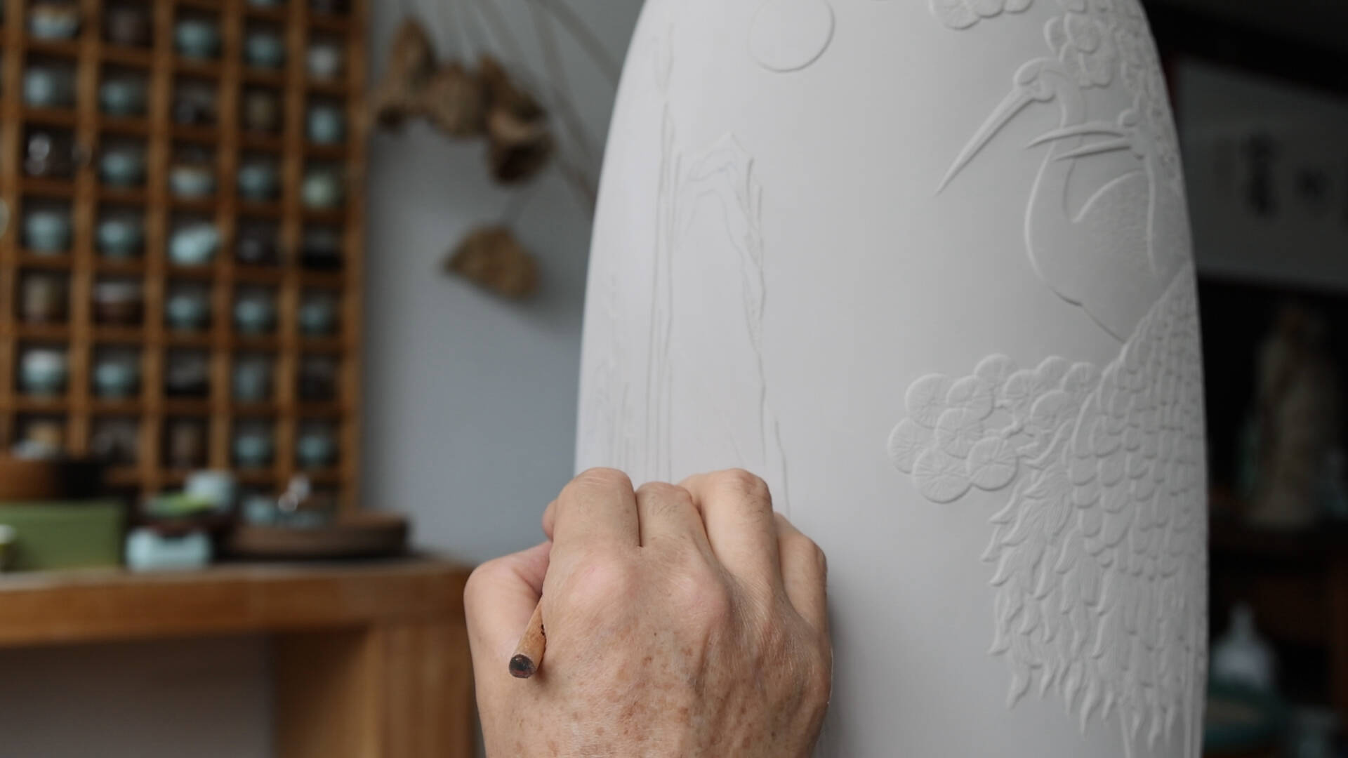 齐州窑薄胎瓷釉下雕塑遵循古法,主要依靠师徒之间的口传心授,老艺人们倾囊相授,用心引导年轻一代领悟个中奥义。此外,随着社会的发展,越来越多的专业教育机构开始设立相关课程,通过理论与实践相结合的教学模式,培养新一代的传承者,确保这一珍贵非遗技艺得以薪火相传,发扬光大。“薄胎瓷釉下雕塑的技艺传承是很重要的,雕塑是非常重要的一个艺术表现形式,它能把这个技术用在很多方面,比如蛋雕、玉雕等等,都是一通百通的。我们为什么要保护这个非遗?就是说这种东西很好,不占主流了,但是它还是像一根钢丝一样不能让它断掉。比如说,现在可以用机器去代替人工作,但是就比较呆、没有灵性,我们做薄胎瓷雕塑最重要的一点就是灵动。所以说有些真正传世的东西都是经过匠心的,经过这个手的温度,它才有了灵魂的。”